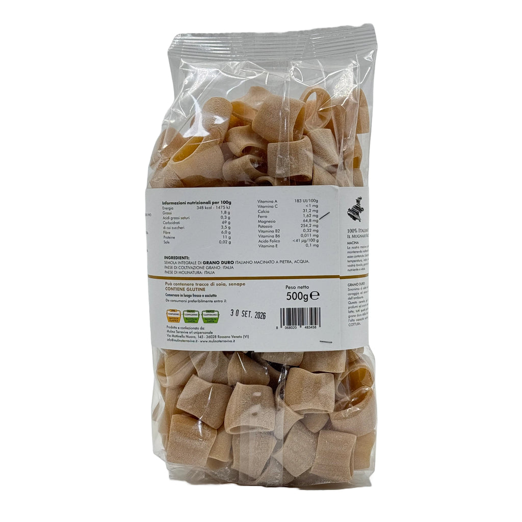 Ho scoperto la Pasta Integrale Grano Duro Linea Oro Calamarata di Mulino Terrevive e mi ha conquistato! La sua porosità abbraccia perfettamente i sughi.
