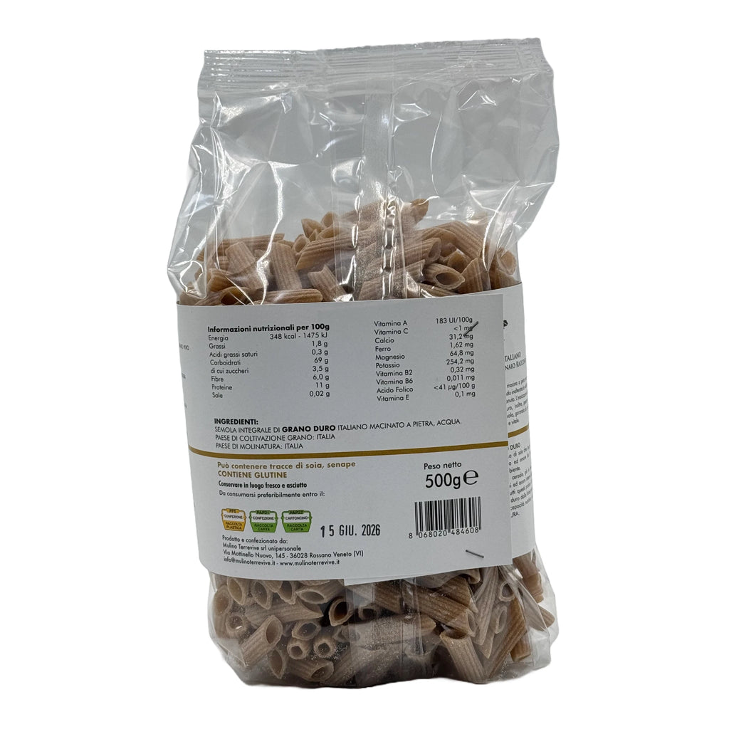 Gold wie die goldgelbe Farbe der Pasta, typisch für einen Prozess, der die ethischen Werte respektiert, die die Terrevive-Mühle auszeichnen: die Verarbeitung des Mehls in einer Steinmühle.