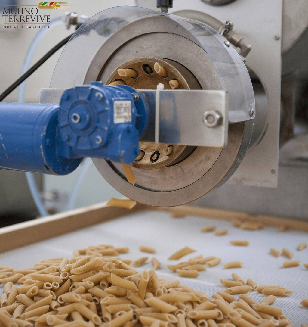 Gold wie die goldgelbe Farbe der Pasta, typisch für einen Prozess, der die ethischen Werte respektiert, die die Terrevive-Mühle auszeichnen: die Verarbeitung des Mehls in einer Steinmühle.