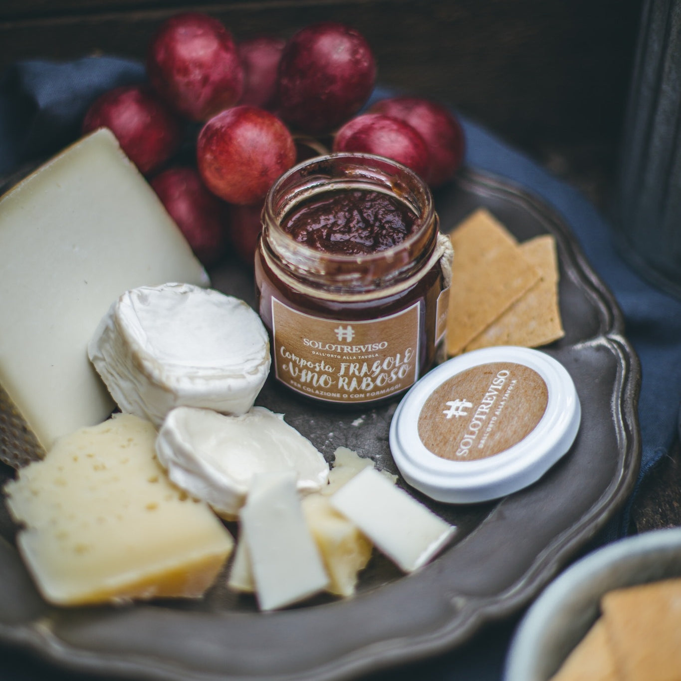 La composta di fragole e vino Glera di SoloTreviso è un prodotto esclusivo che unisce la dolcezza delle fragole fresche e delle mele alla frizzantezza unica del vino glera. Con ingredienti accuratamente selezionati, questa composta contiene fragole fresche, mele, zucchero di canna e un tocco di vino Glera, creando un equilibrio perfetto tra dolcezza naturale e freschezza effervescente. La composta di fragole e vino Glera è ideale per chi desidera iniziare la giornata con un tocco di dolcezza, ma anche per chi cerca un abbinamento raffinato con formaggi stagionati e pepati. La sua consistenza morbida e il sapore ricco la rendono perfetta anche per farcire dessert, crepes o come aggiunta a yogurt e cereali.