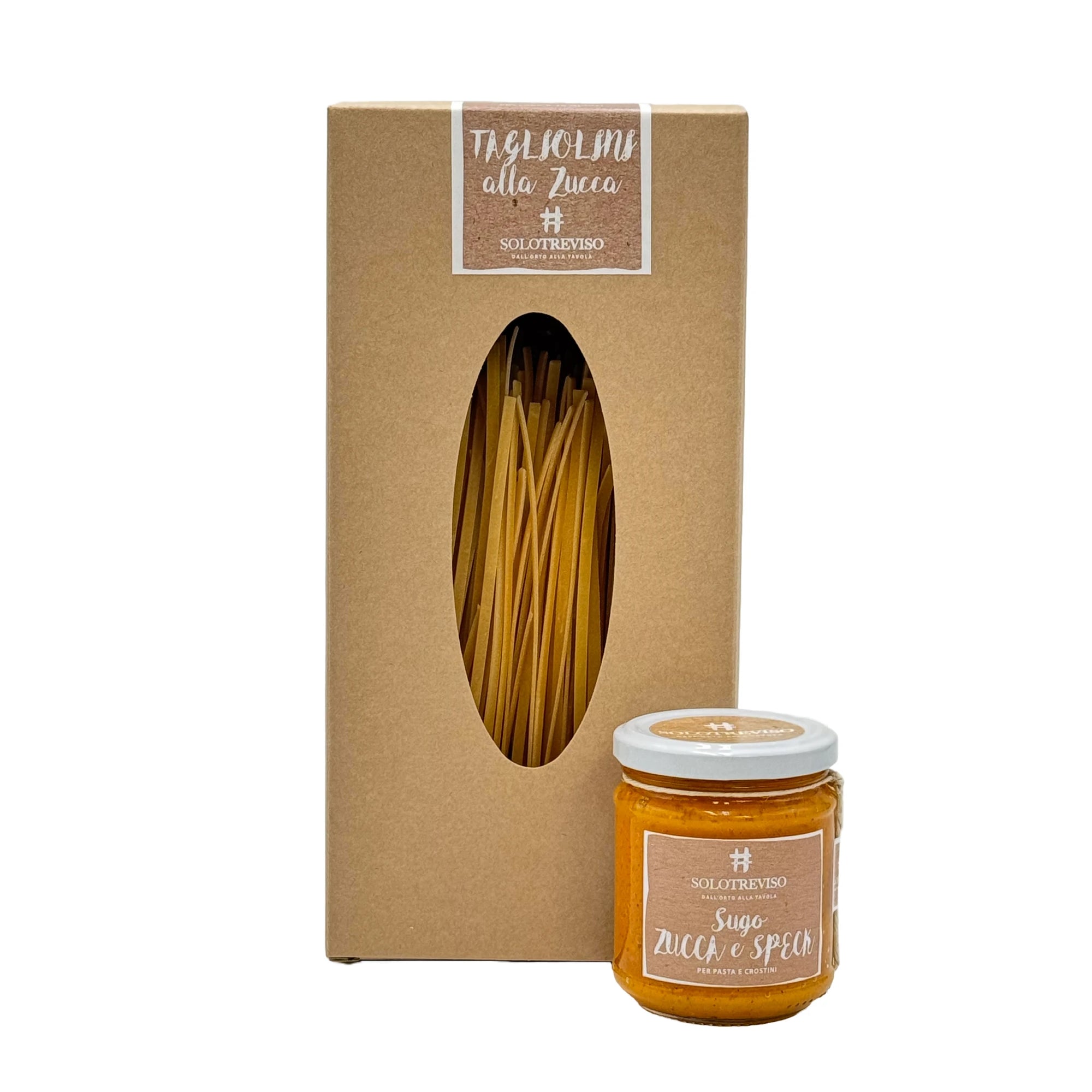 In una tradizione che affonda le radici nel passato, si cela il segreto della qualità di questi tagliolini di semola di grano duro alla zucca, lavorati artigianalmente ed essiccati a bassa temperatura in modo naturale. Come un tempo, la pasta viene lasciata riposare e asciugare lentamente, coperta da un canovaccio, per preservarne intatti profumi e consistenza. È così che si ottiene un prodotto autentico, capace di raccontare il territorio e la manualità di chi lo produce. Durante la cottura, questi tagliolini sprigionano il profumo avvolgente della zucca, con le sue note dolci e delicate che si fondono alla perfezione con la pasta porosa e tenace.