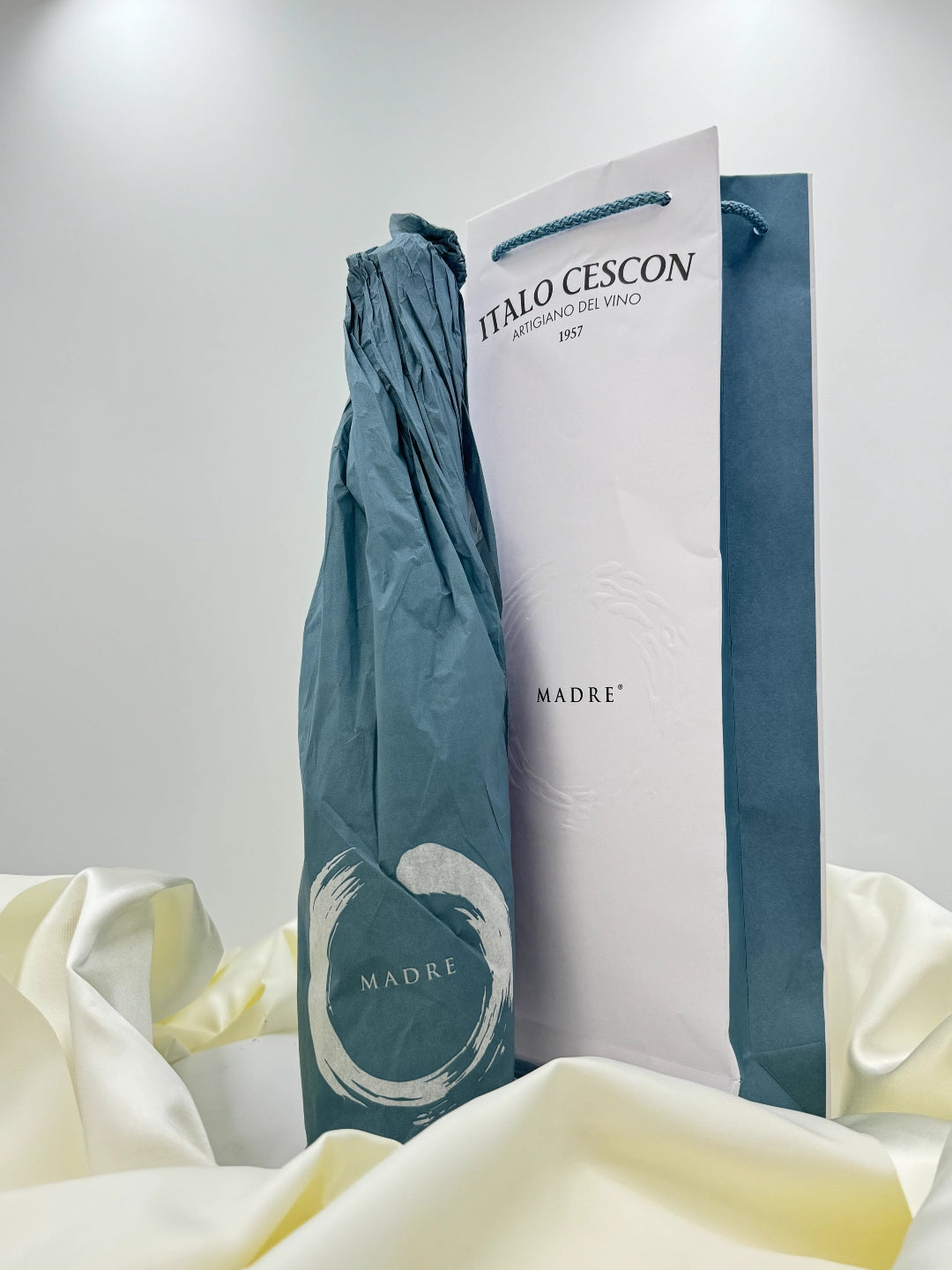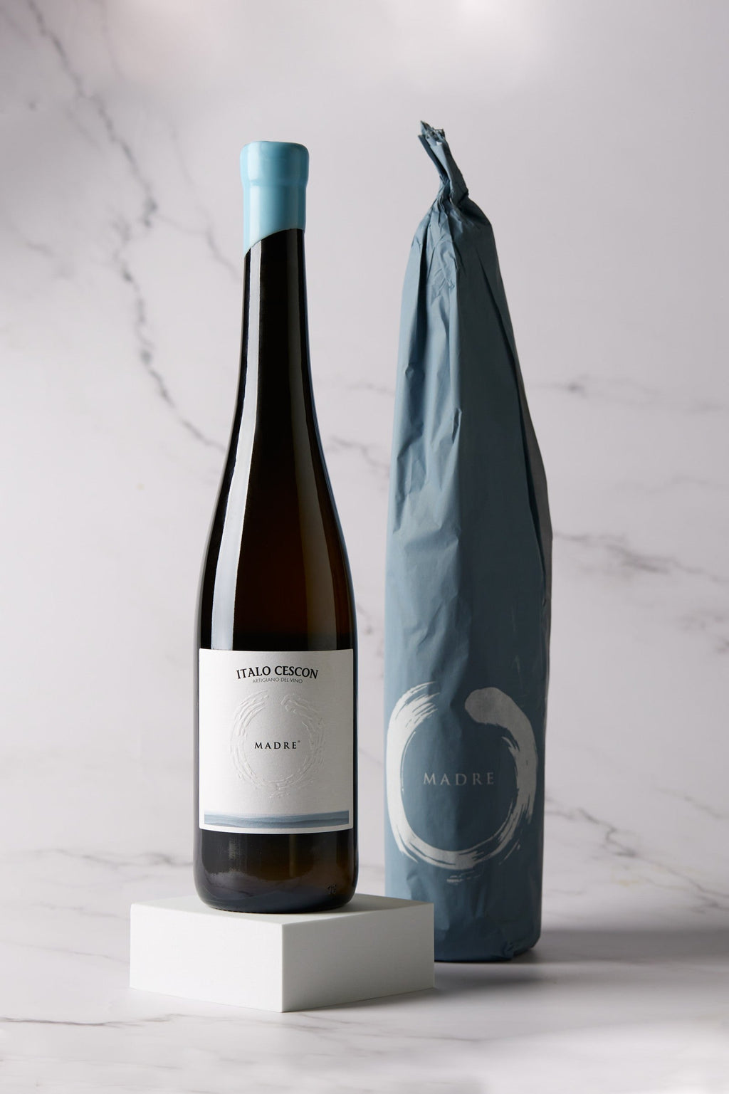 A wine of great longevity, it offers a good harmony with olfactory sensations that find the right home in a balanced acidity, accompanied by an enveloping softness. Nothing is left to chance to dress this particular bottle. The blue is the same as mother Chiara's eyes. The color stands out on the shellac closure and embraces the bottle with 100% organic wrapping. The label, simple and clean, expresses the idea of a hug with a raised graphic sign. The embrace of a mother, the embrace of a flavor that welcomes us.